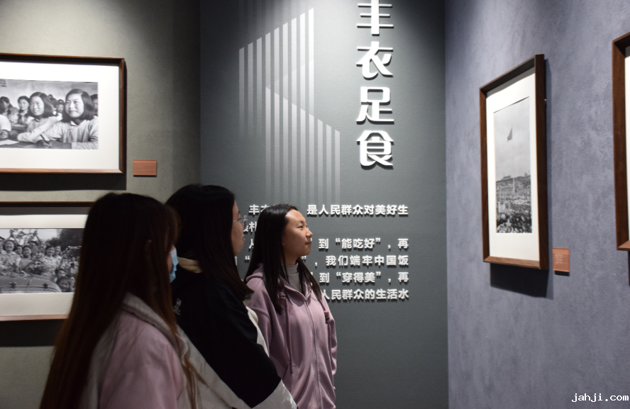展览现场,同学们被一幅幅生动、震撼的新闻摄影作品所吸引。新华社“国社之镜·世纪光影”新闻摄影展汇聚了新华社中国照片档案馆珍藏的1931年至2024年近百年间的历史经典照片,这些作品记录了时代的变迁,见证了社会的发展,从革命年代的烽火硝烟到新时代的繁荣昌盛,从丰衣足食到百花齐放,每一个单元都如同一部视觉史诗,将历史的宏大叙事凝固在取景框中。同学们纷纷驻足观看,不时发出惊叹和感慨,仿佛穿越时空,与照片中的历史瞬间产生共鸣。
