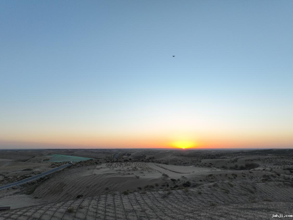 夕阳下的毛乌素沙地