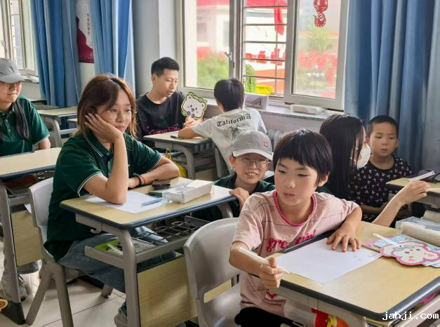 8月13日,实践队来到乌兰察布市儿童福利院开展普通话趣味教学推广活动。青年志愿者们带着精心准备的教材和互动教具,与福利院的孩子们围坐在一起,通过词语接龙、朗诵、绕口令、画画等生动有趣的方式教授普通话。上课期间,孩子们个个兴致高昂,专注地聆听志愿者们的讲解;词语接龙时,大家反应迅速,你一言我一语地接力,眼神中透着不服输的劲儿;在画画期间,孩子们边画边用刚学会的词语分享自己的想法,现场互动热烈又温馨。这些生动的互动,让规范语言的种子在孩子们心底生根发芽,为他们的成长之路增添更多可能。“学好普通话,才能更好地了解外面的世界,将来为家乡振兴出份力!”孩子们稚嫩的话语里,充满了对未来的憧憬。